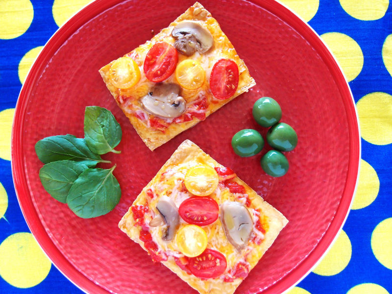 今回の具材はミニトマト(赤、黄)、瓶詰めマッシュルーム